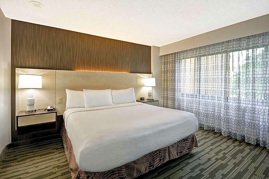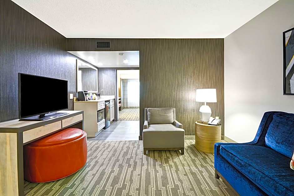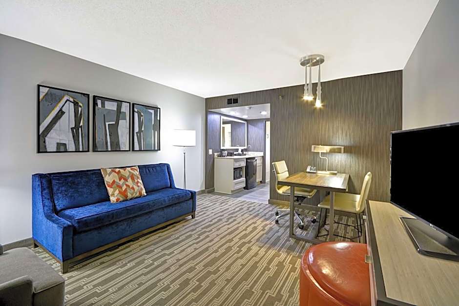 In addition to 24-hour refreshment center access, this suite features a microwave and small refrigerator. A cable TV is also included.